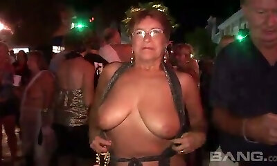These mature gals love to flash in public and they've got big natural tits