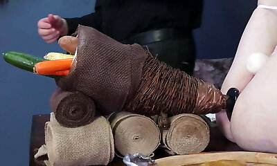 hardcore Sadism & Masochism for punishment there are black dildos in the holes