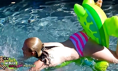 Pool stud nibbled horny teen at the pool, she loves cum and hard pulverizing