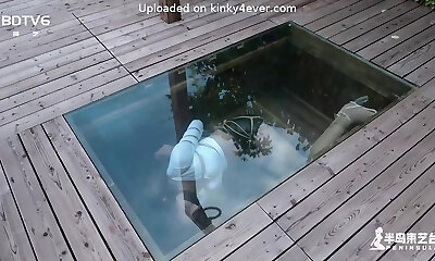 Tied up Asian babe soaked with a water hose