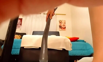Cougar cleaning window public in bdsm